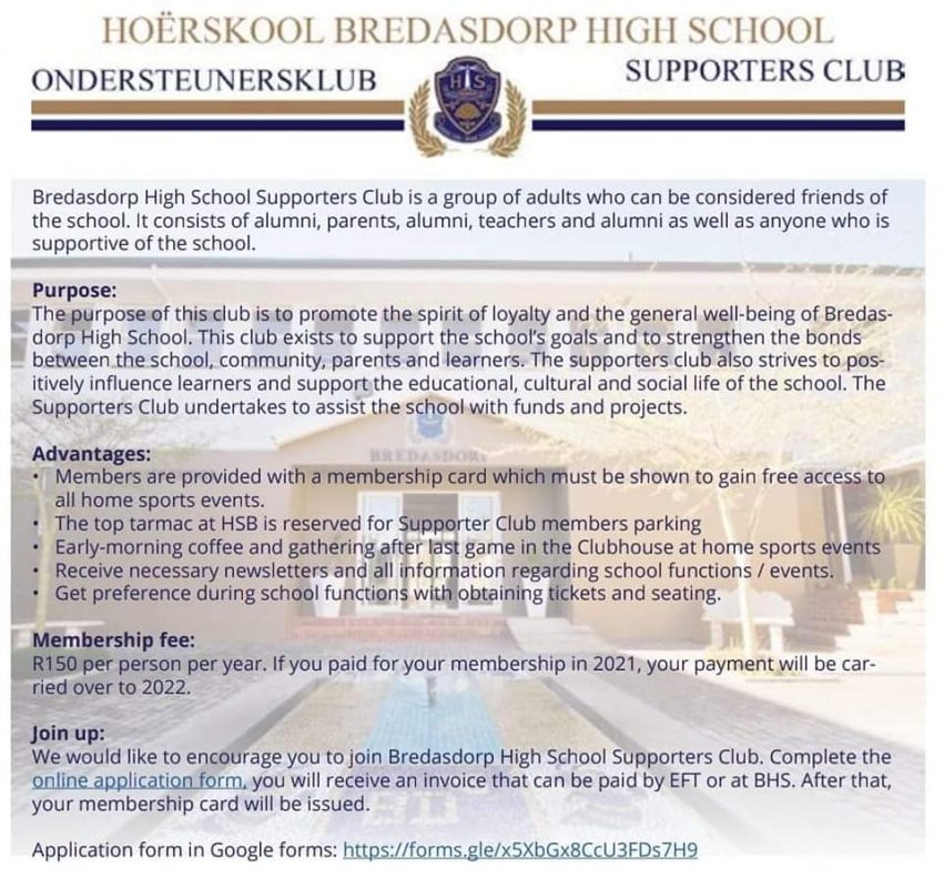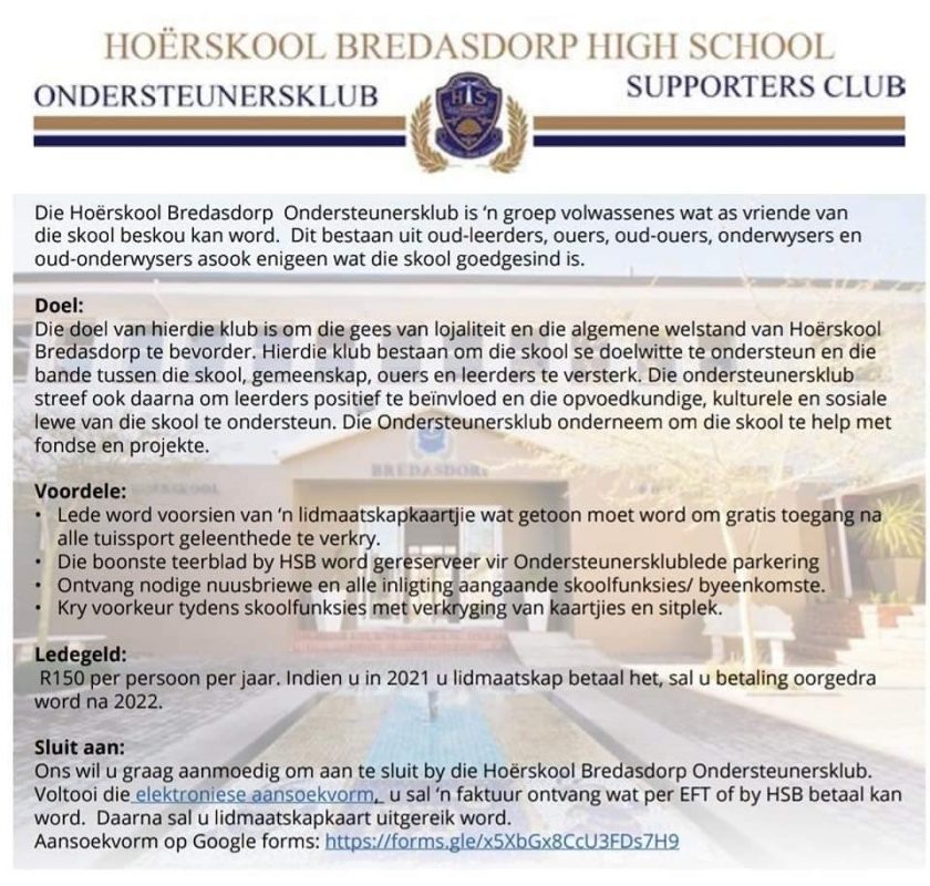 Uncategorised HSB ONDERSTEUNERSKLUB Posted on 7 May 20227 May 2022 by Estelle Genis Sluit aan en ondersteun ons skool en ons leerders. Https://forms.gle/raSUtQQeqvvPWQ3k9 #BDGees #strongertogether #BDtrots Estelle Genis LANDLOOP Netbalbane