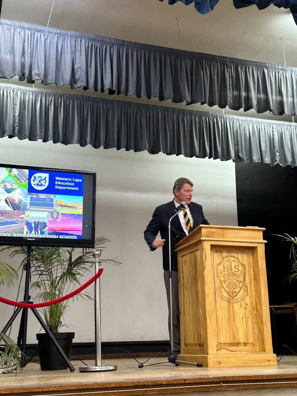 Bredasdorp High School expressed their sincere appreciation to the WKOD for funding the solar panels project during a thank you event in the school hall on September 17, This is a great privilege for which the school is very grateful. The school can therefore function optimally during power outages and effective teaching to handle syllabus meaningfully can continue. The speakers during the event were Mr. Jaco Louw (chairman governing body) and Mr. Joaniel Pieterse (circle manager and WKOD representative).