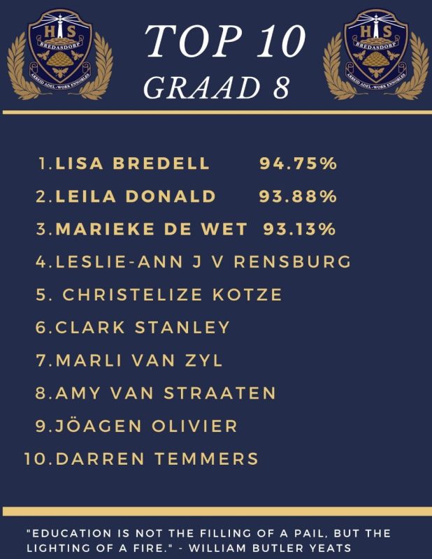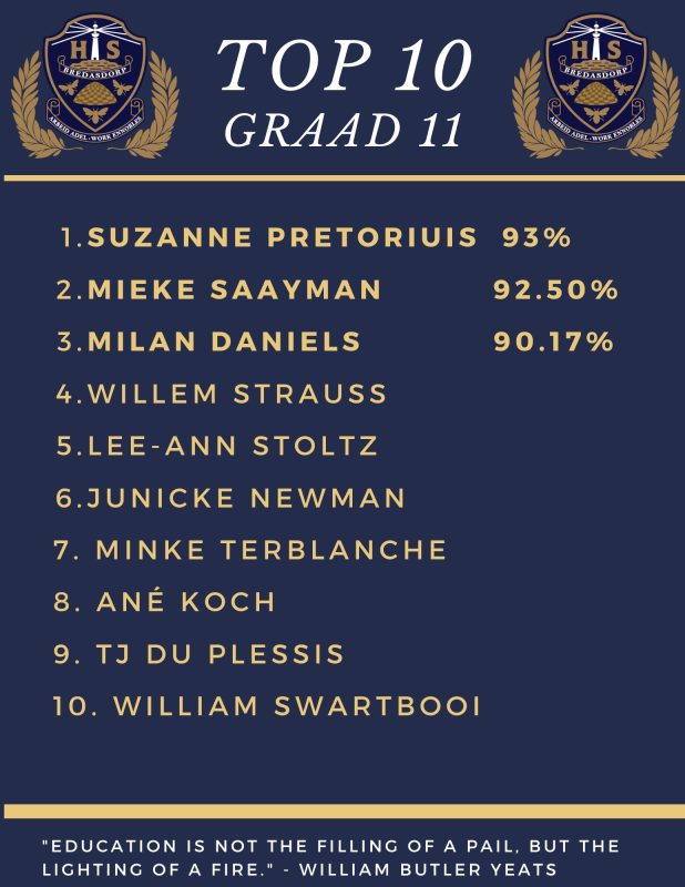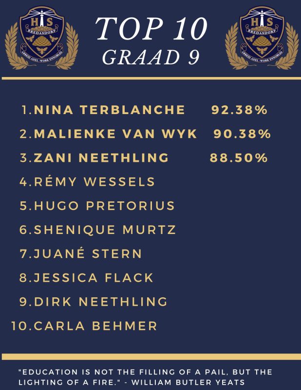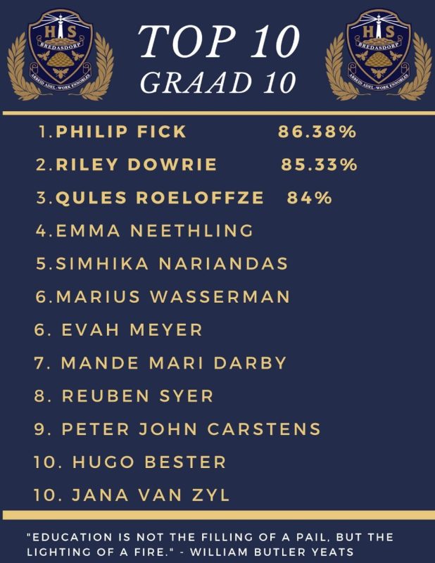 06 Oct Uncategorised TOP 10 – QUARTER 3 Posted on 6 October 20246 October 2024 by Estelle Genis Congratulations to our Top 10 Academic Achievers for Quarter 3. Estelle Genis Top 10 Prestige Toekenningsaand